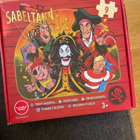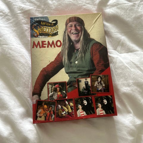 Kaptein sabeltann Memo brettspill med 72 kort. Spillet går ut på å finne par med like bilder og trene hukommelsen. Passer for barn og voksne, og inneholder illustrasjoner fra sabeltann-universet.