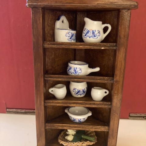 Skapet er helt nytt og fyllt opp med nydelig porselen, keramikk og mm. Str 12,5x8,5x4cm. Sendes mot porto.