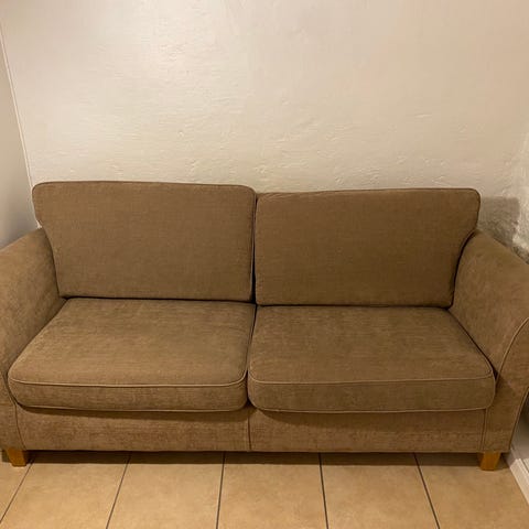 Sofaen er pent brukt, ingen synlige skader eller flekker.
