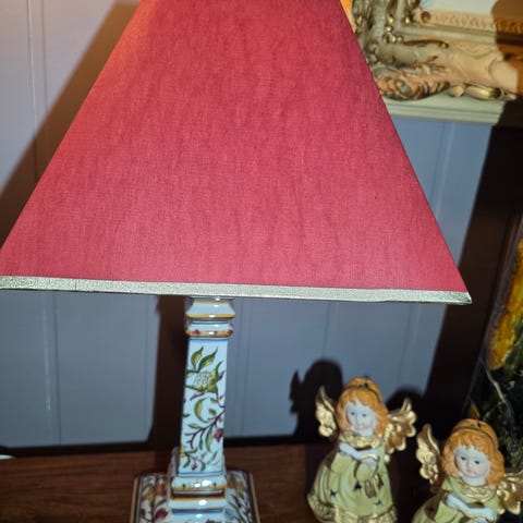 Nydelig gammelt bordlampe. Klar til bruk. Noen fleker på skjermen, se bilder. Kan pakke veldig godt og sende med post nord for 69 kr extra porto eller fix ferdig.