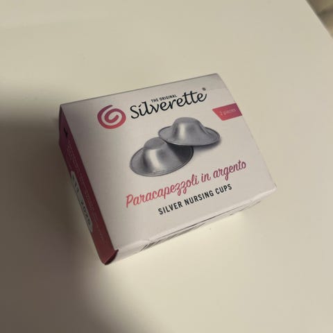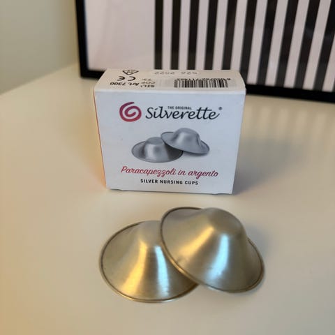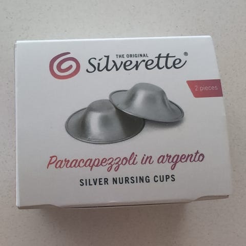 Pent brukte silverette selges! Kjøpt nye av meg juni 2025. Brukt de første ukene, en lifesaver for ammingen! Medfølger 3 stk multimam kompresser (utløp 2027).