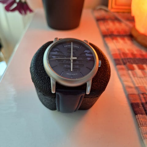 Ny i originalforpakning med alle papirer. Lagt ut av Armani, i forbindelse med Expo 2020 i Dubai. Kjøpt på Armanis hotel der jeg ble invitert til avslutningsfest av bla markedsansvarlig, Italia. RING MEG om du er intressert i en spesiell Armaniklokke.