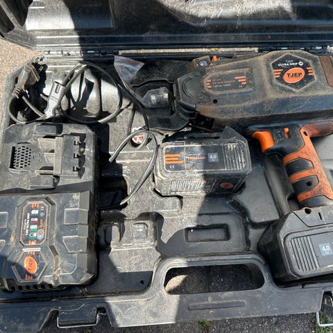 Batteridrevet jernbindemaskin tilsalgs. Komplett med lader og 3 batterier.