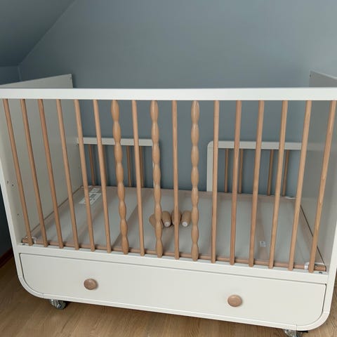 Vi har vært veldig fornøyd med denne sprinkelsengen, har brukt den fra 0-4 år. Madrass senkes enkelt etterhvert som barnet vokser.