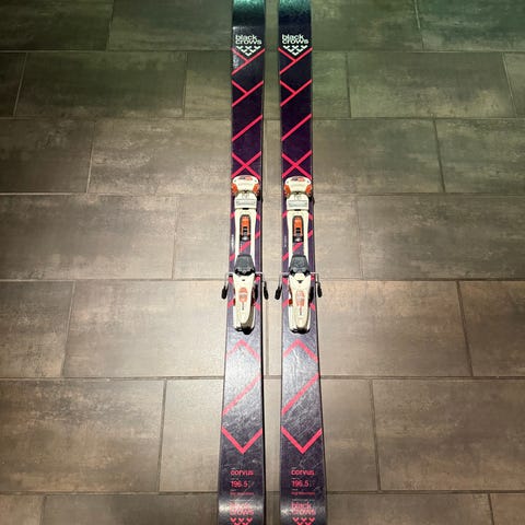Har vært montert Atomic Shift binding på de. Er to sår i sålen markert på siste bilde. Disse er tettet. Ellers er skiene oppbevart og står med glider på sålen.