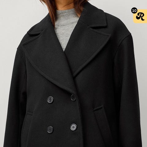 Ellos kåpe i brun farge, laget av ullmateriale. Jakken er designet for kvinner og har størrelse M. Kåpen har belte i livet og klassisk krage.