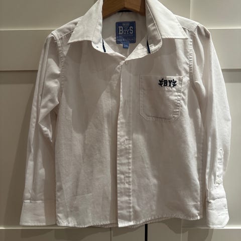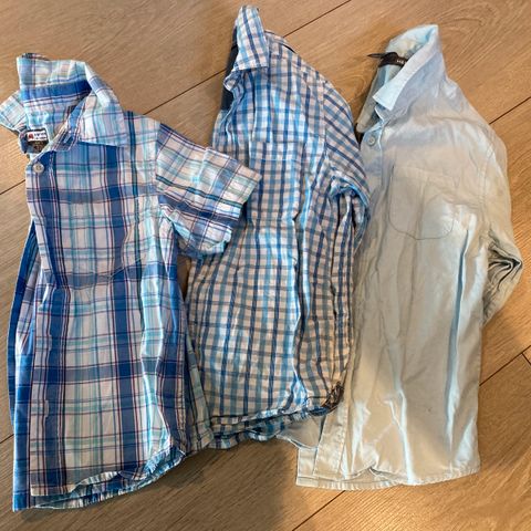 2 stk pene skjorter, en blå og en hvit farge, laget av bomull. Passer for gutt i størrelse 110.