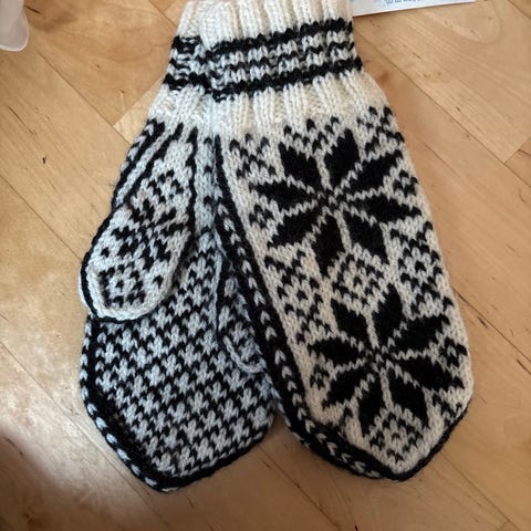 Hjemmestrikket. Stor dame og herrestørrelse selges for kr 75 pr par