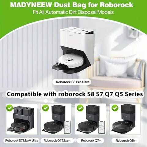 18 Støvposer for Roborock Q5 Max+, Q7 M5+, Q10 S5+, Q5 Pro+, Q8 Max+, Q5, Q5+, Q7, Q7+, Q7 Max, Q7 Max+, S8+, S8 Pro Ultra, S7 Pro Ultra, S7 MaxV Ultra Robotstøvsuger 3,6L à 20 kr. pr. pose.