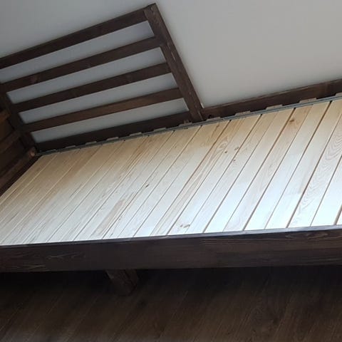 Flekke dagseng, kjøpt 2022, selges. Ingen bruksmerker, fremstår nærmest ny. Madrasser følger ikke med.