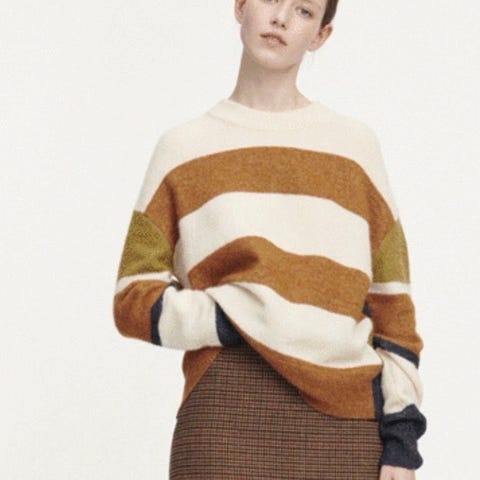 Nydelig detaljer med ribbestrikket krage som du ha opp el ned ..