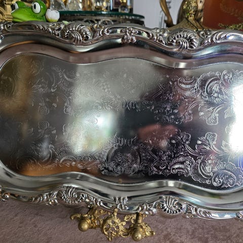 Stort unik sølvplett serveringsfat fra England