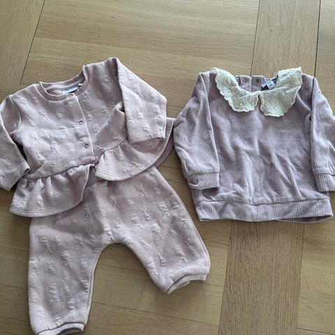 Lillelam barneklær heldrakt i størrelse 62 for jente, inkl babytøfler.Laget av rosa merinoull. Heldrakten har glidelås foran og er designet for barn. Ser bilder for detaljene. Litt nuper men alt bra