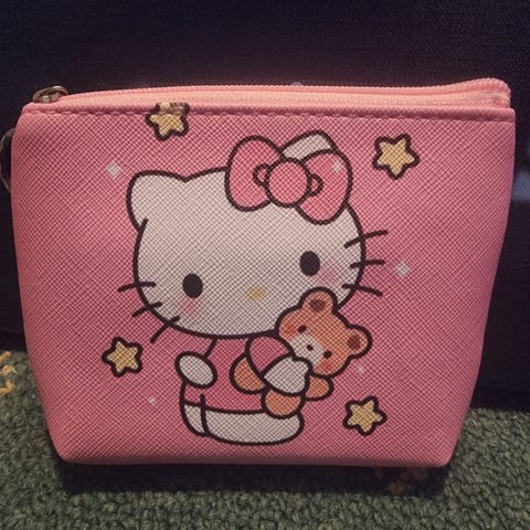 Helt ny ubrukt Hello Kitty veske. Kan også brukes som toalettmappe eller sminkeveske. Lengden er ca. 24 cm.