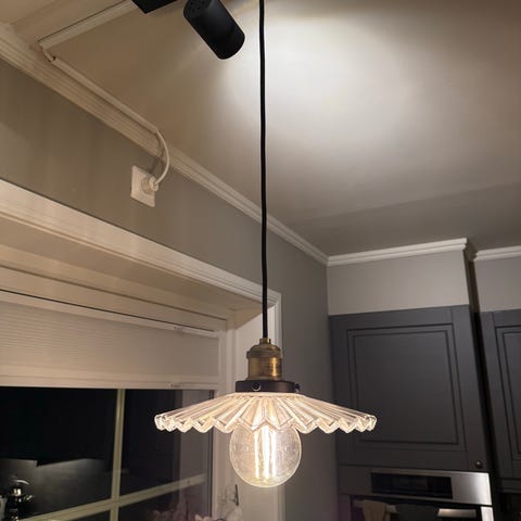 Gir et nydelig lys. Kan henge alene eller sammen med flere i samme serie.
