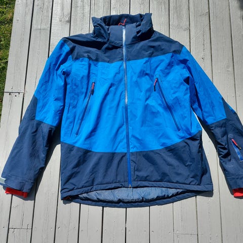Dale of Norway Jotunheim Dombås vinterjakke i størrelse L, blå farge og laget av polyester. Jakken er designet for utendørs bruk om vinteren og har flere lommer med vantett glidelås, skikortlomme i arm og justerbar hette. Selges som sett med bukse