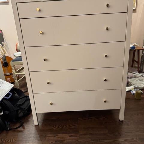 Den høye kommoden gir deg mye oppbevaringsplass uten å ta for mye gulvplass.