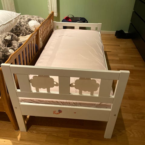 IKEA Kritter juniorseng 70×160 i hvit farge med Luröy sengebunn. Juniorsengen er laget for barn og har et enkelt design som passer til barnerom. Madrass og juniordyne kan følge med om ønskelig.
