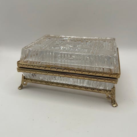 Selger et antikk smykkeskrin med sjarm. Er 25x 20 cm og 5cm høgt. Dette er arvet så vet det er veldig gammelt. Er glass utenpå bildet og speil på innsiden av lokket.
