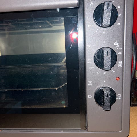 Ovnen er pent brukt og fungerer som den skal. Det eneste å merke seg er at én strek i temperaturdisplayet har sluttet å fungere, slik at tallet ikke vises helt korrekt (se bilde). Dette påvirker ikke bruken av ovnen.