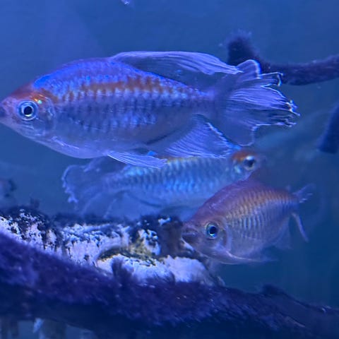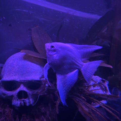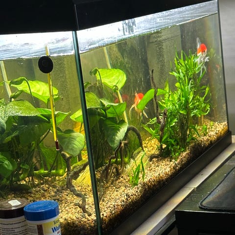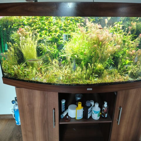 Akvarium med svart stativ