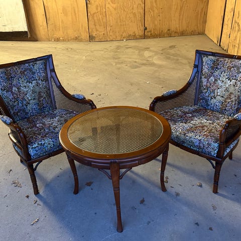 🤎Vintage skinn og rotting stol🤎