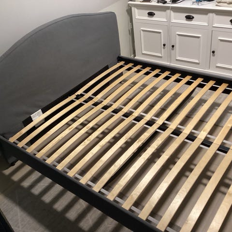 IKEA grey bed for sale, size 160 x 200 cm, with mattress included.