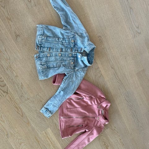 Bobbysocks-vibes på disse! Rosa paljettjakke og jeans med rosa paljetter (som er vandbsre og kan bli svarte). Bomberjakken er aldrig brukt, jeansen er brukt 2 ggr.