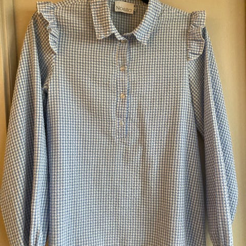 N-Shelly Blouse fra Noella. Denne blusen kombinerer feminine detaljer med en sofistikert silhuett. Den har korte, voluminøse ermer og er laget i et strukturert jacquardstoff med blomstermønster. Den dype vinrøde tonen gir et luksuriøst uttrykk, mens den rette passformen gjør den enkel å style både til hverdag og fest. Bak lukkes den med en liten knapp i nakken for en elegant finish.