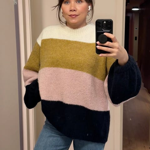 God, myk strikkegenser fra Acne Studios vurderes solgt. Er en oversized modell i størrelse XXS. 50% ull og alpakka. Kan brukes både brettet opp eller i full lengde, som vist på bildene 😊 Nydelige farger! Veldig pent brukt.