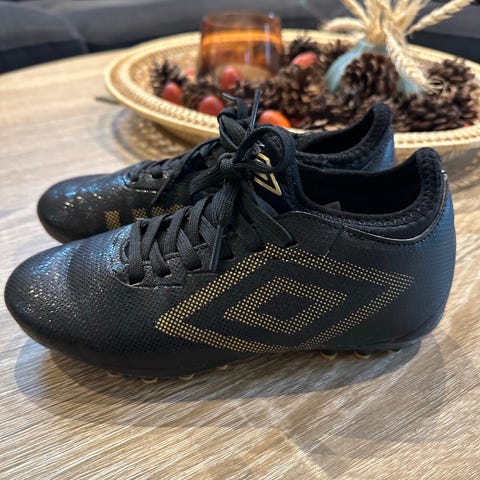 Umbro svarte og blå fotballsko for barn. Skoene har borrelås Egnet for bruk på kunstgress og grus.