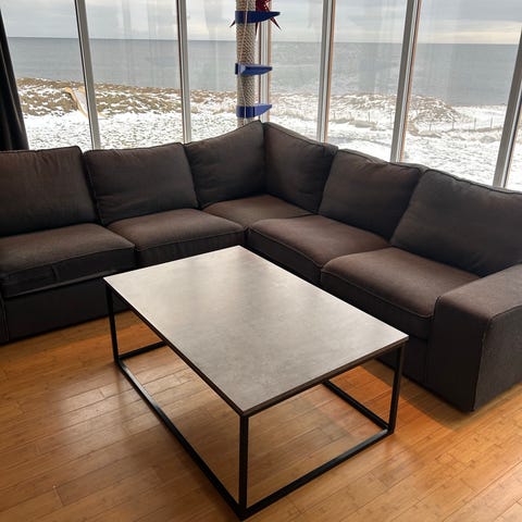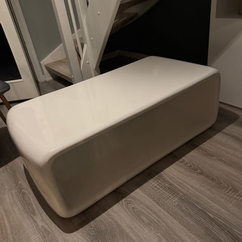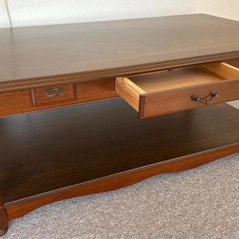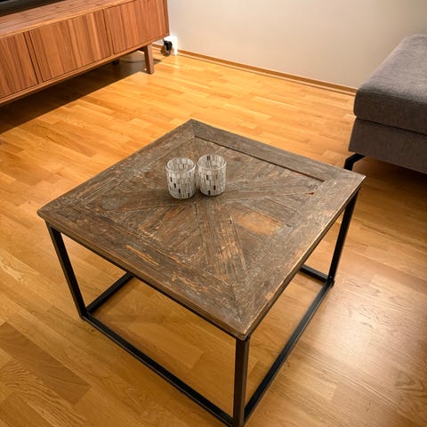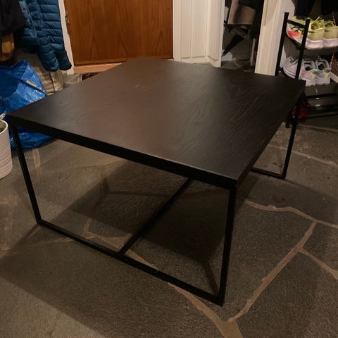 To sofabord gis bort mot henting. De hører sammen, men kan også brukes hver for seg. Målene som er tatt er av det største bordet (svart bord). Noen riper etter bruk/vask, synlig i sterkt sollys.