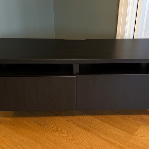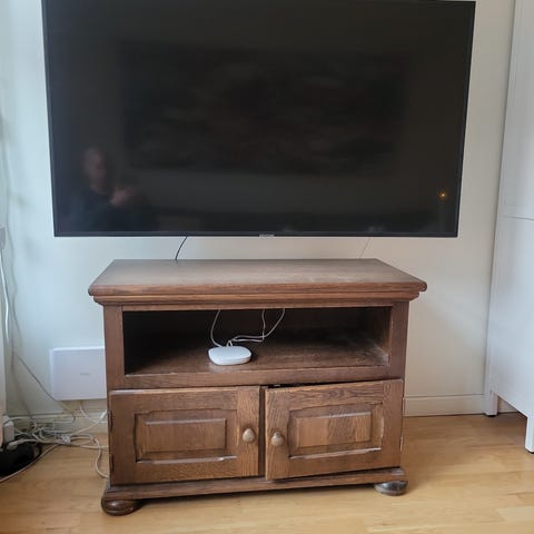 Håndlaget heltre furu. Tv- bordet gis bort mot henting.
