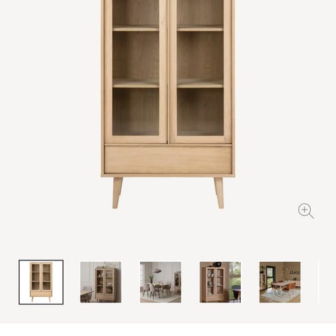 Nydelig vintage skap i tre og glass med nøkkellås og en ekstra skuff nederst. Glasset er sprukket på toppen så man kan bytte det ut hvis det er ønskelig. Pent brukt ellers med lite bruksmerker og fine detaljer. Passer med andre møbler jeg har lagt ut som hører sammen i en spisestue samling. Må hentes og du trenger nok bærehjelp. Gi bud og si ifra hvis du ønsker flere bilder.
