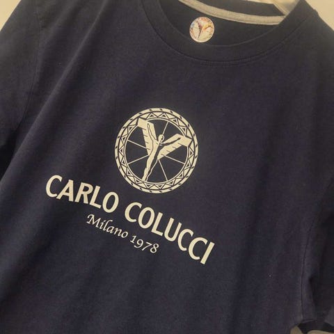 Genser fra Carlo Colucci I blå farge laget av 50% merinoull, 50% polyakryl. Størrelse M.