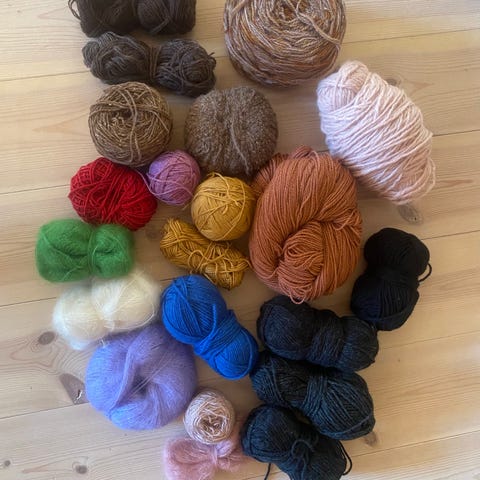 9 bunter i samme innfargning. Nydelig garn til alt fra gensere, kofter til sokker.