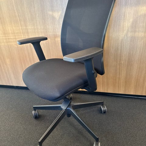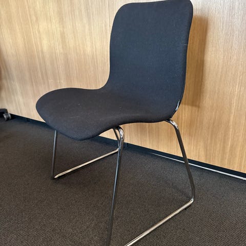 Stolen har slitesterkt ullstoff og krommet understell. Den er komfortabel, solid og egner seg godt både til møterom, hjemmekontor eller som ekstra stol i stuen. Pent brukt og i god stand.