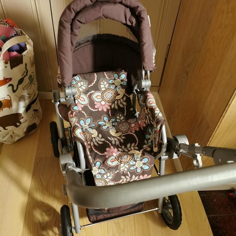 Pent brukt Mommy and me, tvilling/søsken-dukkevogn i rosa og svart farge. Passer til lek med dukker, designet for barn. Mange justeringsmuligheter på ryggstøtter, håndtaket. Vognen kan foldes sammen. 'Sikkerhetsbelter' til dukkene. Oppbevaring under.