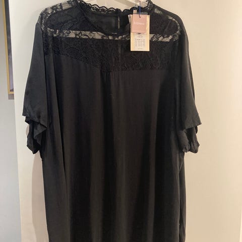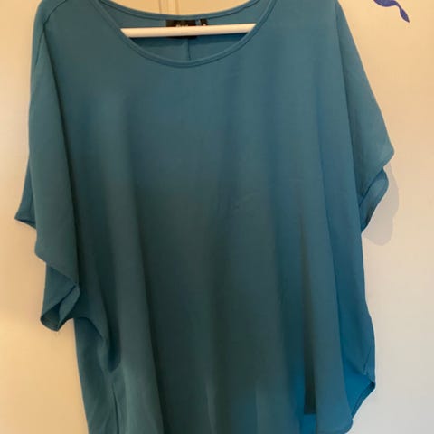 Finslig topp str. 42/44 Løs og ledig. Polyester fremme og viskose bak. Ikke brukt, bare prøvd på.