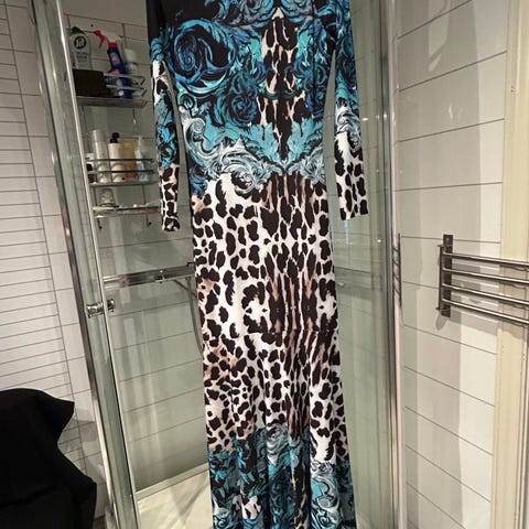 Silkekjole fra Roberto Cavalli. Lang med åpen rygg. Sitter nydelig på kroppen og er veldig behagelig å ha på.
