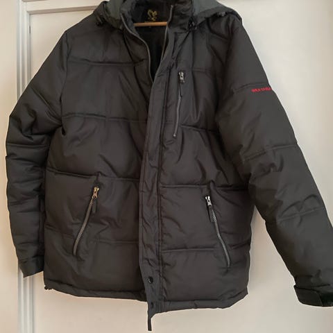 Brukt to ganger, for stor i størrelsen. Pelsen til hetten mangler dessverre, ellers som ny. God og varm.