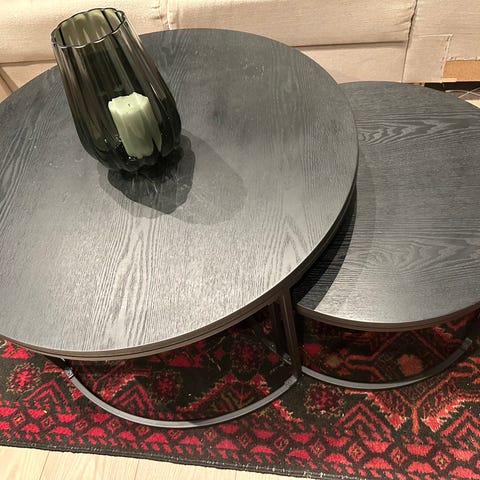 Pent brukt sofabord med blankt understell og hvit glassplate. Litt dårlige bilder - står på en putekasse mot vegg. Bordet er brukt i under 1 år. Førpris kr.7.498,- selges kr.2.990,- ferdig prutet. Må hentes.