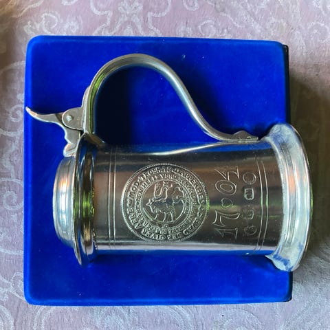 Gammel liten kiste i Tinn. Kan se ut som det er tsjekkisk utifra stempel