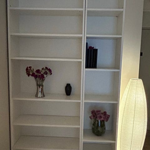 1 mindre hylle, dybde 26cm, bredde 40cm og høyde 202cm nypris: 795,- pr stk redusert pris med 50% : 398,-