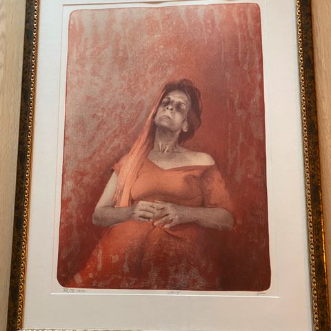The Trinity, litografi av Natalie Holland. Nr 11/30. Litografiet er innrammet og har følgende mål: