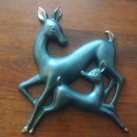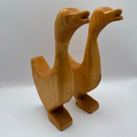 Selger flotte vintage veggfigurer i form av flygende gjess, laget i støpt metall.
