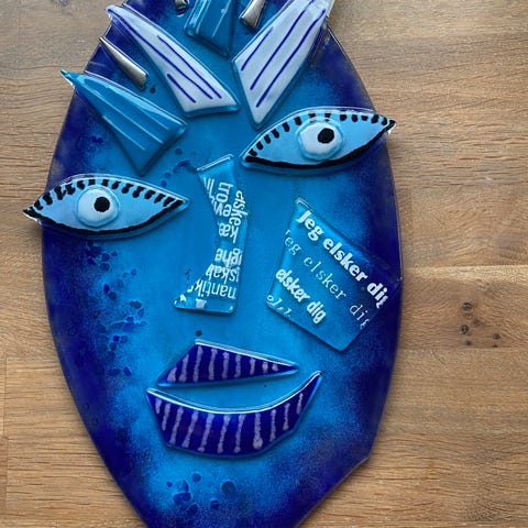 To høye glass, fire shotteglass kjøpt ved Berlinmuren i 2003, som nye. Motiver fra den anerkjente gatekunstneren Thierry Noir som er kjent for sine fargerike Berlinmur-malerier. Thierry Noir er en pioner innen gatekunst med en stil av enkle, fargerike figurer som symboliserer frihet.
