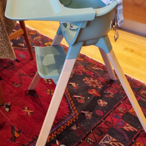 Tripp trapp stolen er ikke lengre i bruk hos oss og selges rimelig ved henting. Stolen er godt brukt men fungerer som den skal. Gi bud.