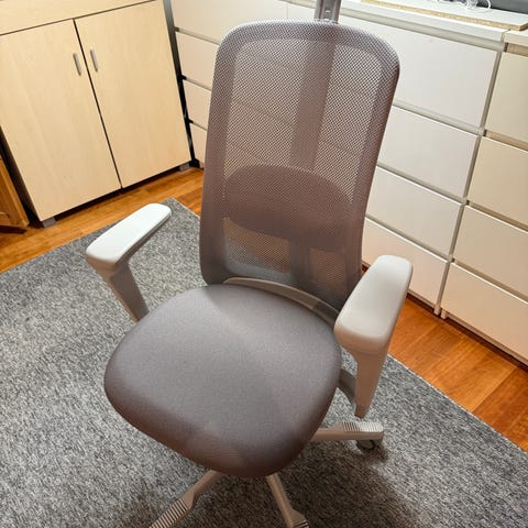 Stolen har svart stoff, HÅG SlideBack-armlener og svart understell. Den gir utmerket sittekomfort og ergonomisk støtte, og passer perfekt til kontor eller hjemmekontor. Pent brukt og i god stand.