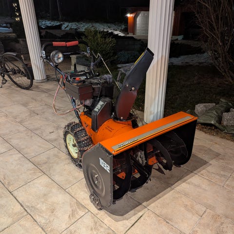 Selger en amerikansk Stiga med 8,5 hk Briggs and Stratton motor og elektrisk 230V starter. Den har fått service med ny bensin, tennplugg, motorolje, reimer, brytebolter og smøring av bevegelige deler. Alt fungerer som det skal fungere.